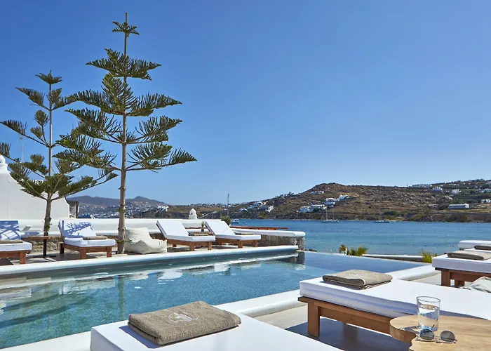 El confortable hotel Mykonos Waves Beach House & Suites Ornos incluye 7 habitaciones y está ubicado a poco más de 25 minutos a pie del Museo Arqueológico de Miconos. Este aparthotel de 4 estrellas también cuenta con una terraza con piscina y tumbonas.